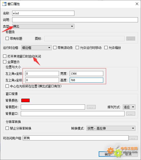 3.紫金桥新建窗口1,窗口2,窗口类型要求“弹出式”,把“打开其他窗口时自动关闭”取消勾选。