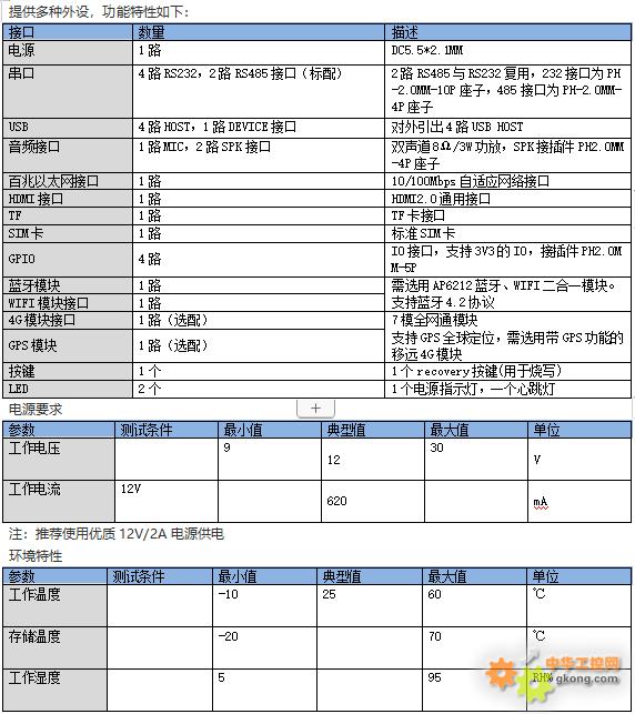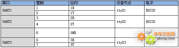 UART1、UART2、UART3、UART4这4路均经过RS232电平转换,做过防静电处理。另外UART3、UART4是RS232与RS485硬件复用(UART3、UART4要么用于RS232,要么用于RS485,两者不可同时使用)。串口定义如下表所示:注:UART2串口是调试接口,在启动时会有打印信息出现,开机后可作为普通串口使用。