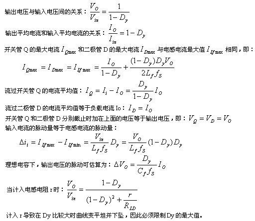 开关管Q也为PWM控制方式,但最大占空比Dy必须限制,不允许在Dy=1的状态下工作。电感Lf在输入侧,称为升压电感。Boost变换器也有CCM和DCM两种工作方式。