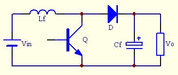 Q导通时为电感Lf储能阶段,此时电源不向负载提供能量,负载靠储于电容Cf的能量维持工作;Q关断时,电源和电感共同向负载供电,此时还给电容Cf充电。变换器必须接负载,不然会因能量不断送到负载端而使Vo不断升高而损坏。